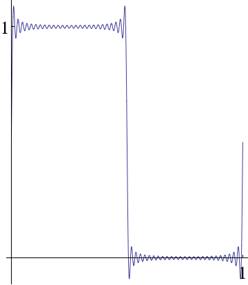 An example of the Gibbs phenomenon is shown in Figure 9.7.1.