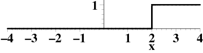 By shifting the argument of the function, it is possible to put the discontinuity of the theta function wherever we need it. In Figure 6.1.2 you can see that the graph of \(\Theta(x-2)\) has discontinuity at \(x=2\text{,}\) instead of at \(x=0\text{.}\)