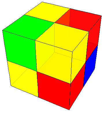 The issue is that, in the \(2\times2\) magic square, \(\PP\) is (reinterpreted as) a completely antisymmetric matrix, a rank 2 tensor. In the \(3\times3\) magic square, we must replace \(\PP\) by a completely antisymmetric rank 3 tensor. We can think of this process as replacing a square by a cube, as shown in (((Unresolved xref, reference "blocks"; check spelling or use "provisional" attribute))) . The square corresponds to \(\PP\text{,}\) with two real degrees of freedom on the diagonal (\(p\pm q\)), and one vector degree of freedom on the off diagonal (\(\XX\)). In a cube, we still have two real degrees of freedom on the main diagonal, but there are now two independent sets of vectors, in three copies each, filling out the cube. This geometric description correctly explains the fact that the minimal representation of \(\ee_7\) is given by a pair of real numbers \(p\pm q\text{,}\) together with two elements \(\XXX,\YYY\in\bH_3(\OO)\text{.}\) The collection \((p+q,p-q,\XXX,\YYY)\) is called a Freudenthal triple system, and has dimension \(1+1+27+27=56\) as a vector space.