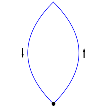 But integrals of conservative vector fields are independent of path, so that evaluating the integral along two different paths between the same two points yields the same answer, as illustrated in [2]. Combining two such paths into a closed loop changes the orientation of one path, as shown in Figure 12.19, and the integrals now cancel; the integral of \(\grad V\) around any closed loop vanishes. Using Stokes’ Theorem, we therefore obtain