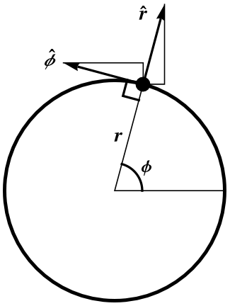 In general, a basis vector of the form \(\widehat{coordinate}\) is the unit vector that points in the direction in which \(coordinate\) is changing. However, unlike the rectangular basis vectors, these vector fields vary from point to point.