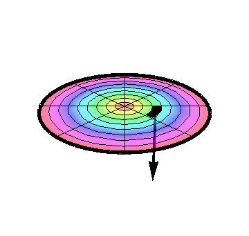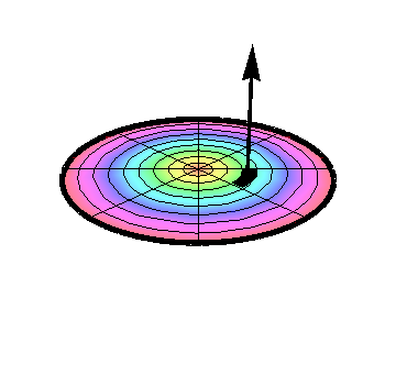 In each of these examples, the direction of the vector surface element is given by the basis vector associated with the coordinate that you held constant when describing the surface — up to sign. This sign corresponds to a choice about the orientation of the surface. The standard conventions, adopted above, are to orient the surface element outward for a closed surface such as a sphere, and upward otherwise, unless otherwise stated. In the absence of such a convention, each of the surface elements above would have to be preceded by a factor of \(\pm1\text{.}\) Compare the two drawings in Figure 7.5.1.