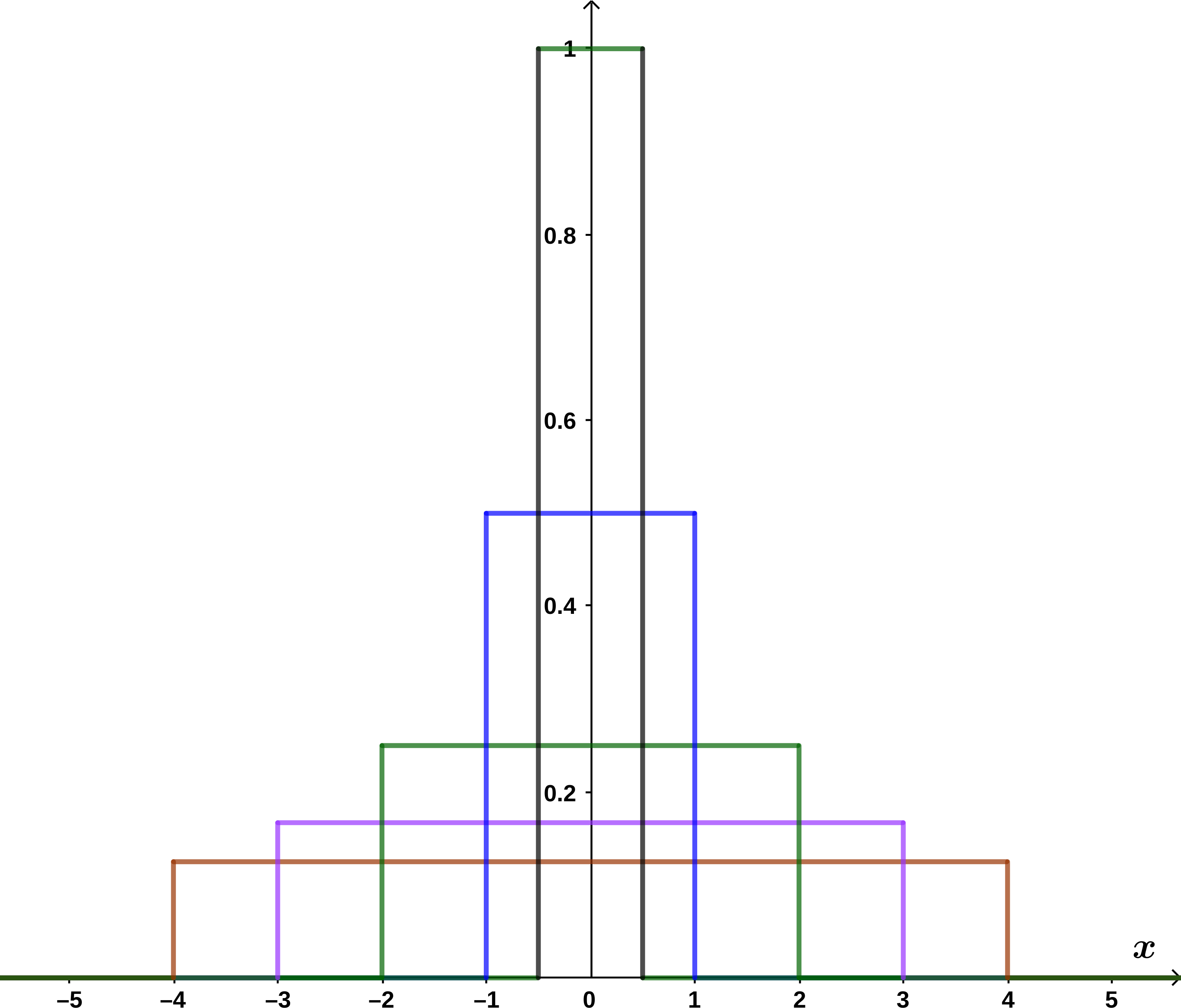 It may be easiest to think of the delta function as the limit of a sequence of steps, each of which is higher and narrower than the previous step, such that the area under the step is always one; see Figure Figure 8.2.1.