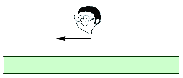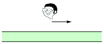 Suppose that the electric field at a particular point above the plane had a component parallel to the plane. Let's call the direction of the electric field the \(x\)-direction. An observer, standing at this point, might initially face so as to see the electric field pointing straight in front of him, as shown in the first drawing in Figure 13.4.1. But, if that observer then turns in place to face a different direction, he would expect to see the electric field still pointing straight in front of him because of the symmetry of what he sees. Indeed, if he had been blindfolded when he turned, he could not tell, by looking at the charge distribution everywhere, that he had turned at all. This scenario is shown in the third drawing in Figure 13.4.1. Nevertheless, the fact that the observer has turned has not changed the electric field. If it initially had a component in the \(x\)-direction, it must still have a component in the \(x\)-direction. So the observer actually sees the situation depicted in the second drawing in Figure 13.4.1, which is not what he expected. The only way to resolve this contradiction is to recognize that our original assumption cannot be true. The electric field cannot have a component parallel to the plane. A similar argument using the translational symmetry, as shown in Figure 13.4.2, shows that the electric field can only depend on the distance from the plane. And another similar argument shows that the electric field must in fact point in opposite directions on opposite sides of the plane. The electric field must therefore be of the form