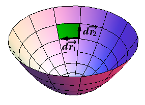 There is however a significant difference between these two approaches: Drawing the curves on the paraboloid with \(s\) or \(\phi\) held constant is easy; drawing the curves with \(x\) or \(y\) held constant is not. Try it! 1 The rectangular coordinate approach relies for its geometric intuition on the generic figure found in most textbooks which maps the rectangular “parameter space” into the surface, whereas the cylindrical coordinate approach starts by choosing the geometrically obvious curves in the given surface.