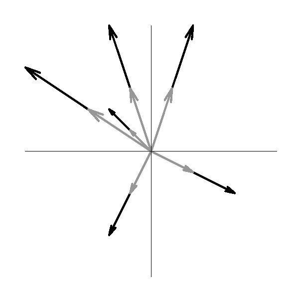 On the other hand, the position vector \(\rr\) corresponding to a particular point \(P\) in space points from an arbitrary but specific, fixed origin to the point \(P\text{,}\) i.e. its tail is at the origin. If we now let the point \(P\) vary all over space, then the position vector becomes a vector field, which we could write as \(\rr(P)\text{.}\) There is one vector for each point in space, just as for an ordinary vector field, but now each vector is most naturally represented with its tail at the origin and its head “attached” to the point in space at which the position vector field is being evaluated. See Figure 3.16.1.