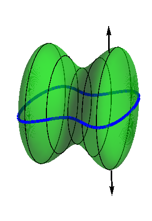 for any vector field \(\FF\text{.}\) Consider a closed surface. Cut it in half along some closed curve, as shown in the first diagram in Figure 14.15.2. Then each piece of the surface is a butterfly net with the same rim, as shown in the second diagram in Figure 14.15.2 (with the pieces separated for clarity). Applying Stokes' Theorem to each piece leads to the conclusion that the flux of the curl of \(\FF\) upward through each piece must be the same, so that the flux up through the top cancels the flux downward through the bottom. This cancellation forces the flux of the curl of \(\FF\) outward through the entire surface to vanish. Using the Divergence Theorem, we get