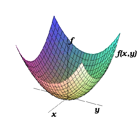 If a scalar field such as temperature or electrostatic potential or gravitational potential represents a scalar-valued physical quantity at each point in space, then, since space is three-dimensional, a scalar field is effectively a function of three variables. How can we graph such functions? For functions of one or two variables, if we use one or two dimensions to represent the domain of the scalar field, we have at least one physical dimension left to represent the value of the function. Thus, functions of one variable are plotted in two dimensions and functions of two variables are plotted in three dimensions, as shown in Figure Figure 4.4.1.