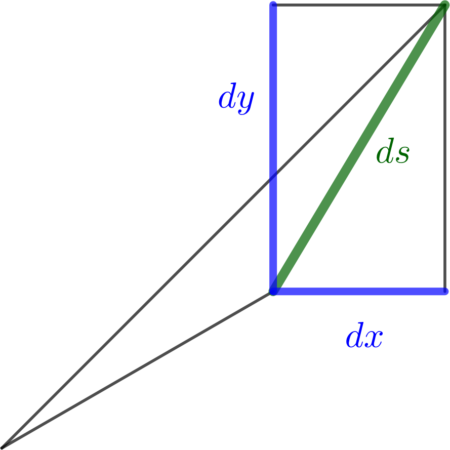 which is just the infinitesimal Pythagorean Theorem, the two-dimensional version of which is shown in Figure 2.2.2. 1