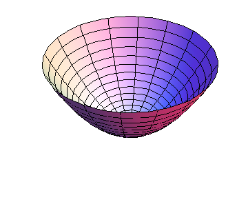 Consider first the simpler case when \(B=0\text{.}\) Then \(h\) is parabolic along both the \(x\) and \(y\) axes; the only question is whether the parabolas open up or down. If \(AC>0\text{,}\) both parabolas open in the same direction, and the graph is a paraboloid, as shown in Figures 11.2.2 and Figure 11.2.1, whereas if \(AC\lt 0\text{,}\) the graph is saddle-shaped, as shown in Figure 11.2.3.